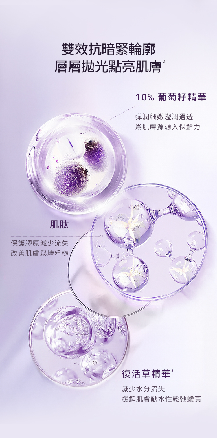 功效: 多維度抗氧 延緩(防止)肌膚衰老,多維度深層補水,彈潤肌膚,提亮膚色,瑩潤透亮,改善暗沉,修護舒緩,毛孔粗大